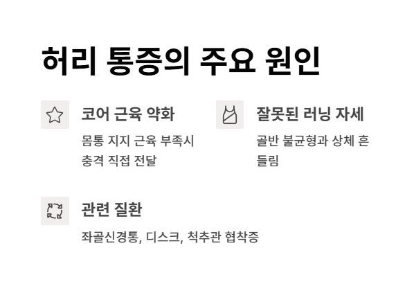 달리기 후 허리 통증은 잘못된 자세, 코어 근육 약화, 준비 운동 부족 등 다양한 원인에서 비롯될 수 있습니다.